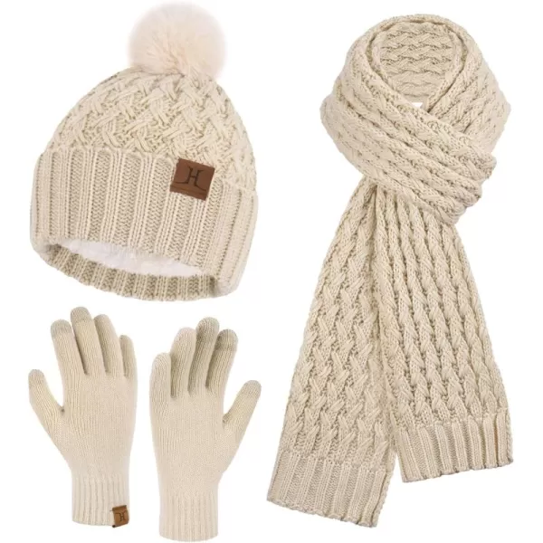 FZ FANTASTIC ZONE Womens Winter Warm Beanie Hat Long Neck Scarf Touchscreen Gloves Set Knit Skull Caps Pompom with Fleece Lined Gifts for Women