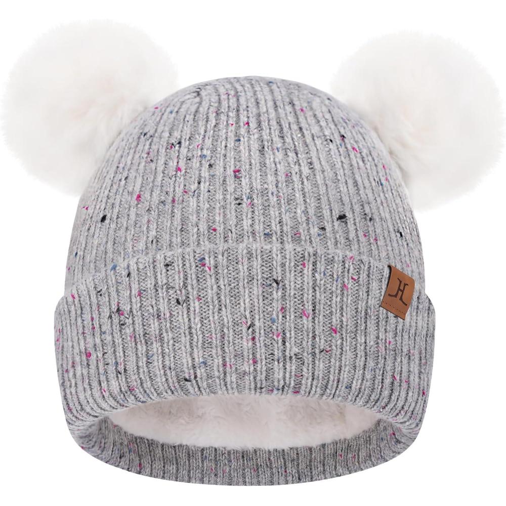 FZ FANTASTIC ZONE Toddler Kids Winter Hat Beanie Pompom Warm Fleece Baby Hats 0-6 12 Months 1 2 3 4 Year Old Girls Boys Gifts(Grey)