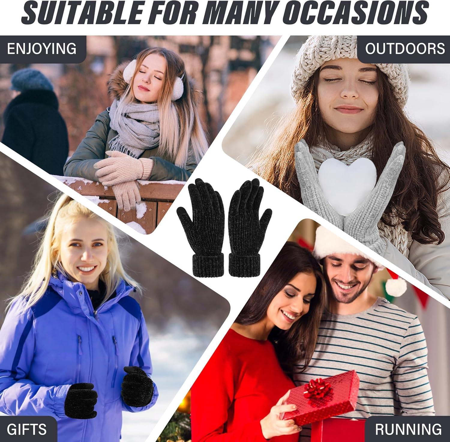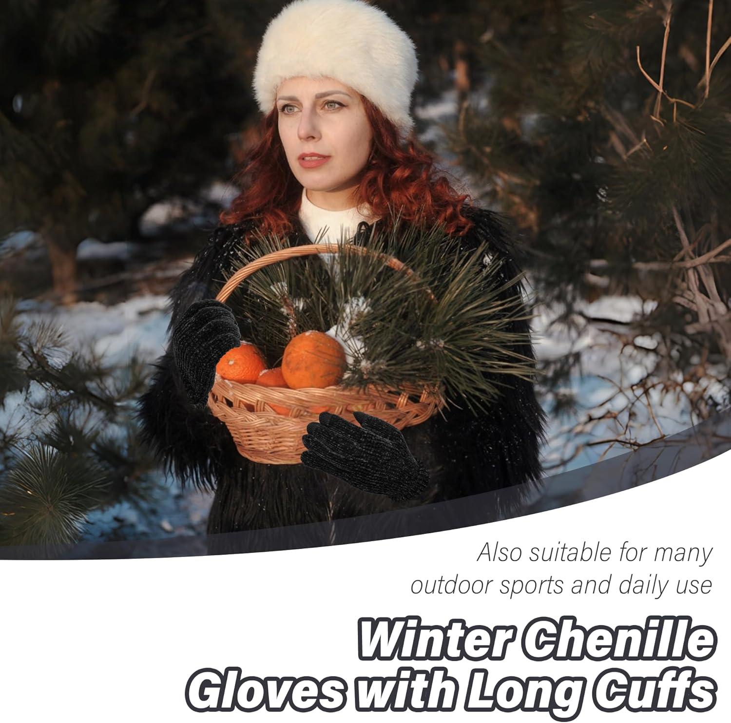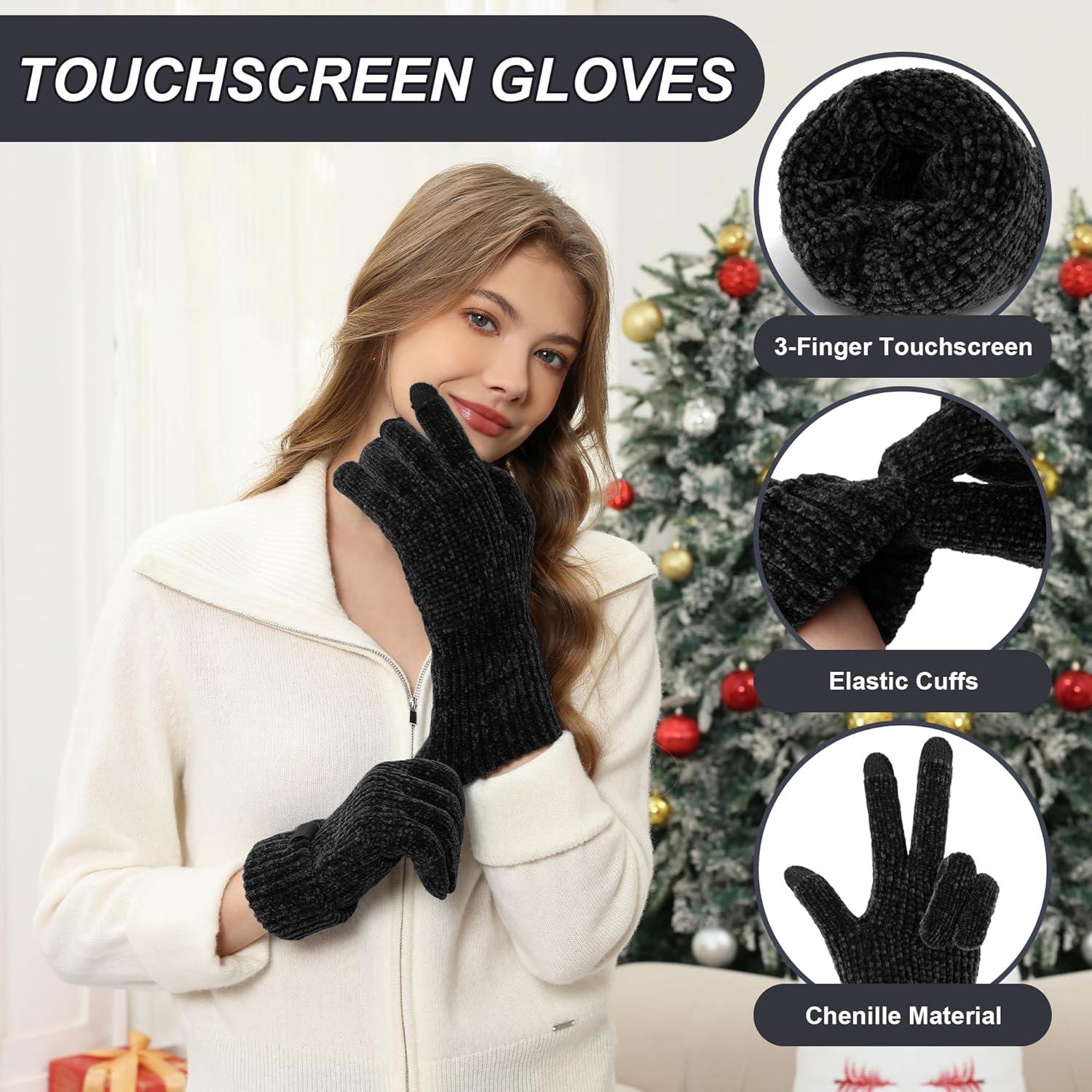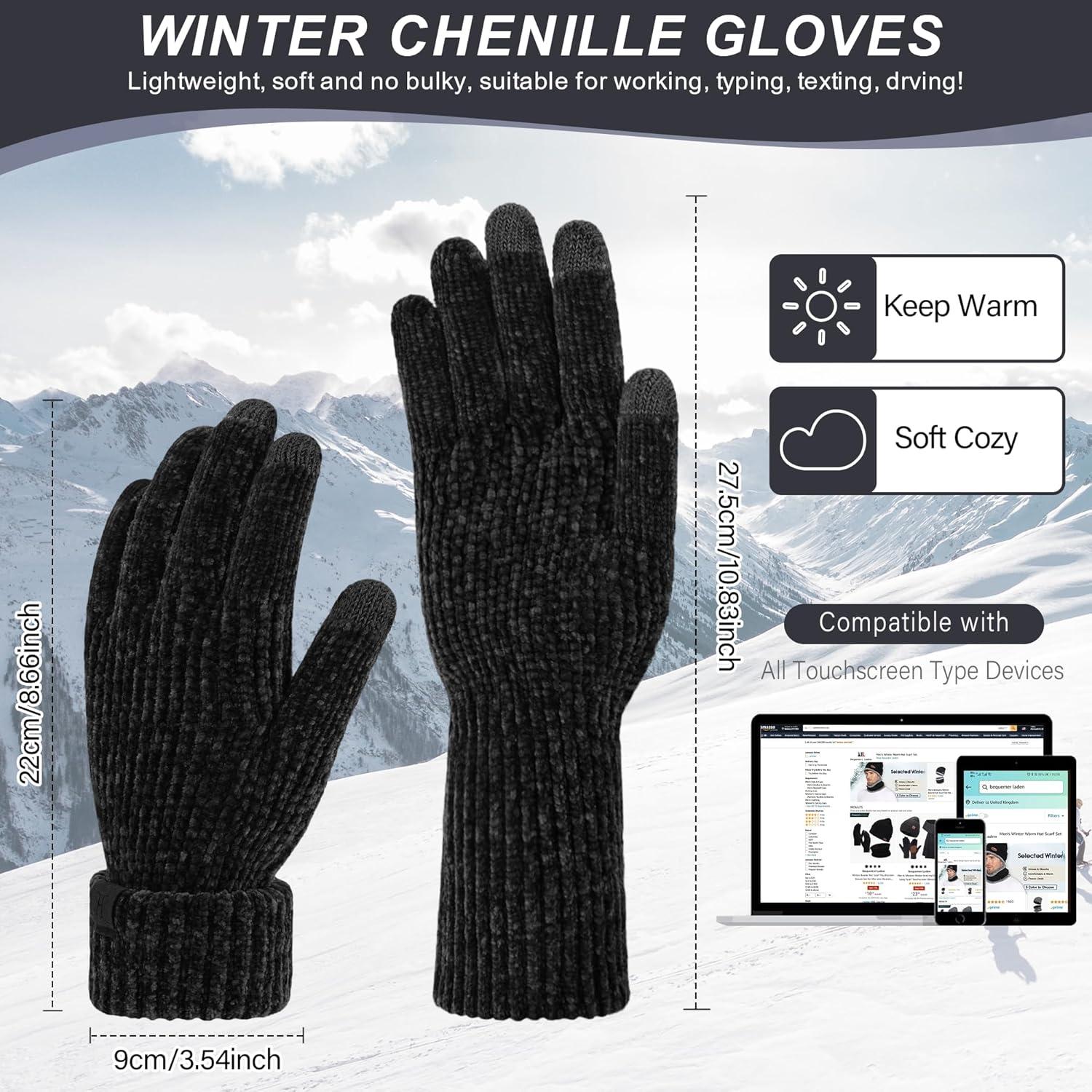 FZ FANTASTIC ZONE Winter Gloves for Women, Chenille Warm Knit Work Touchscreen Womens Gloves for Cold Weather Gifts(Black)