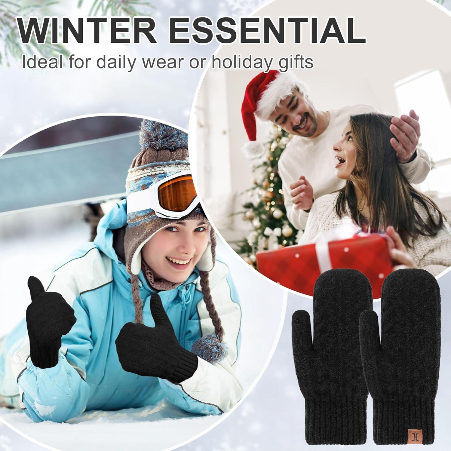FZ FANTASTIC ZONE Winter Warm Mittens for Women, Knitted Womens Gloves for Cold Weather with Thick Fleece Lined Gifts(Black)