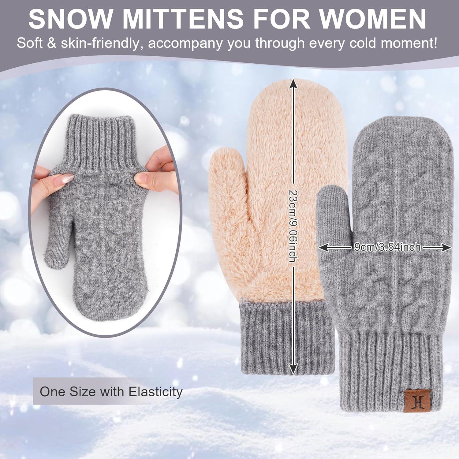 Winter Mittens for Women Cold Weather with Fleece Lining Knitted Thermal Gloves