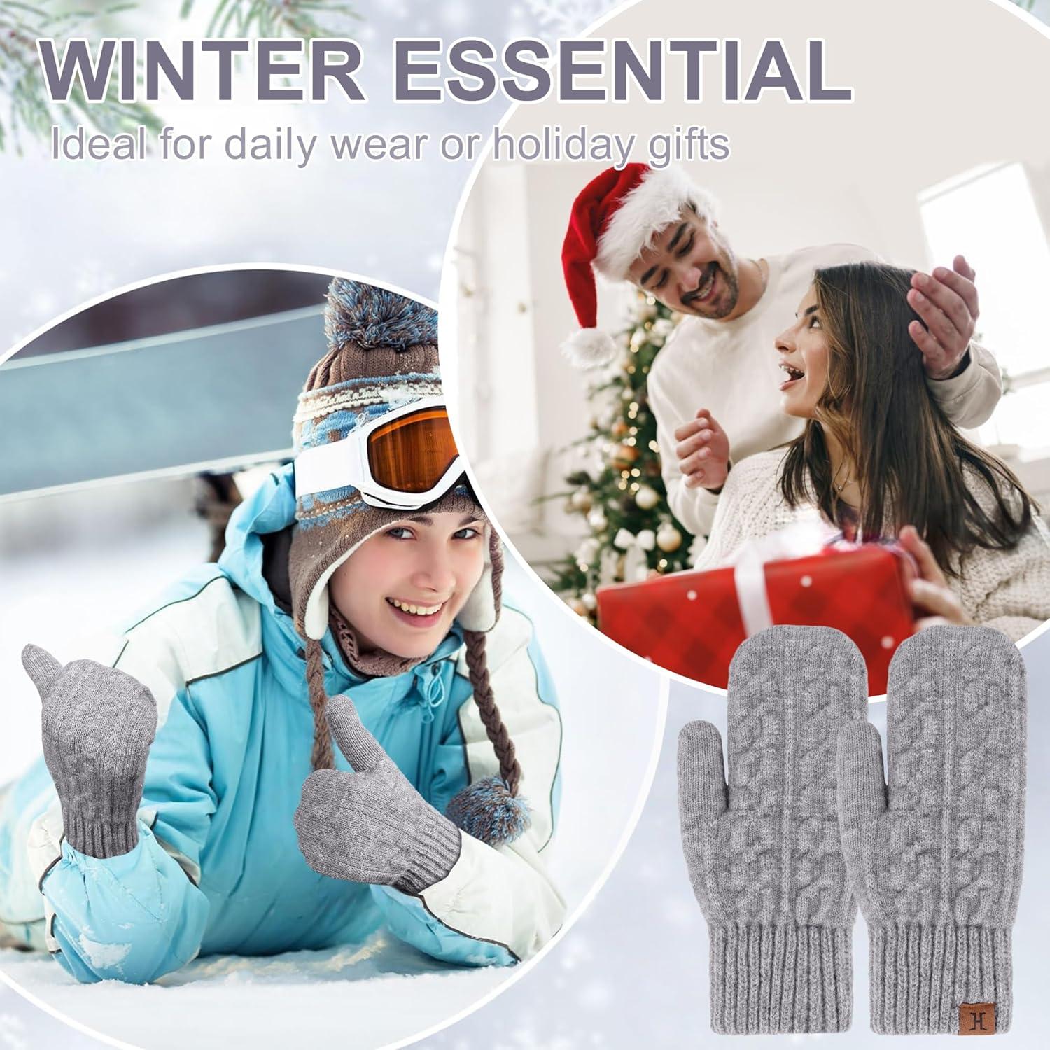 FZ FANTASTIC ZONE Winter Warm Mittens for Women, Knitted Womens Gloves for Cold Weather with Thick Fleece Lined Gifts(Grey)