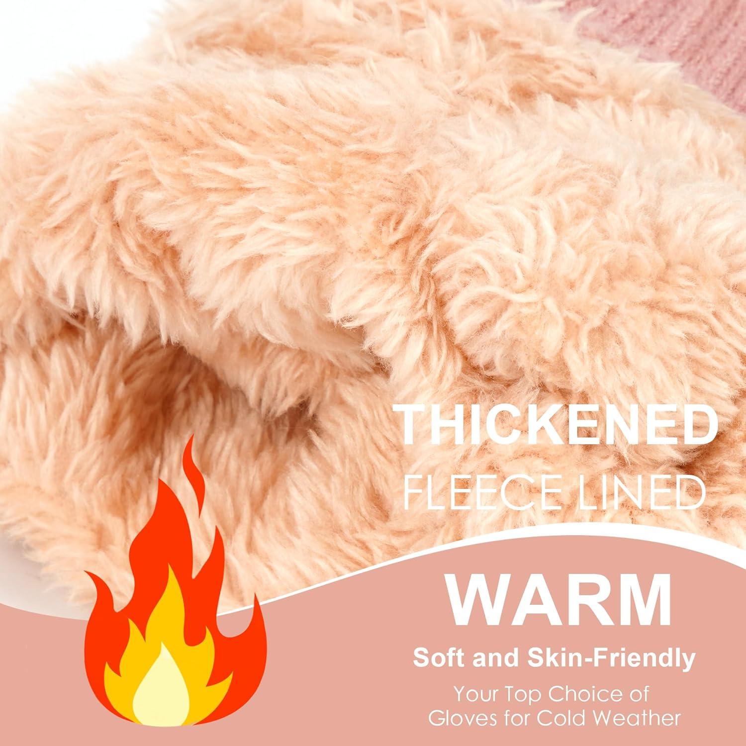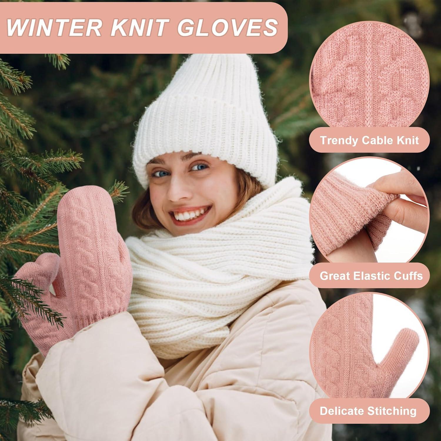 FZ FANTASTIC ZONE Winter Warm Mittens for Women, Knitted Womens Gloves for Cold Weather with Thick Fleece Lined Gifts(Pink)