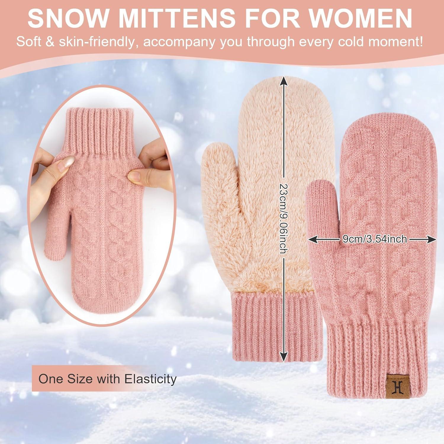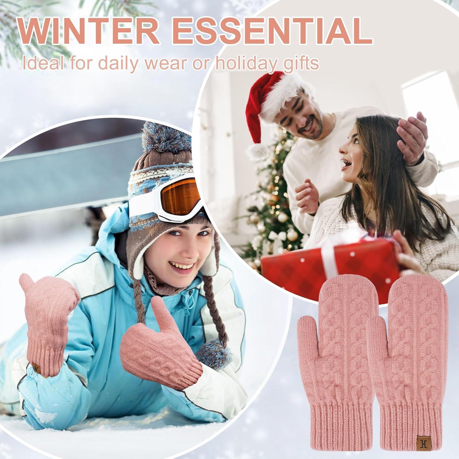 Winter Mittens for Women Cold Weather with Fleece Lining Knitted Thermal Gloves
