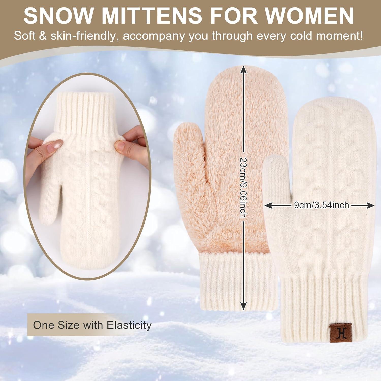 Winter Mittens for Women Cold Weather with Fleece Lining Knitted Thermal Gloves