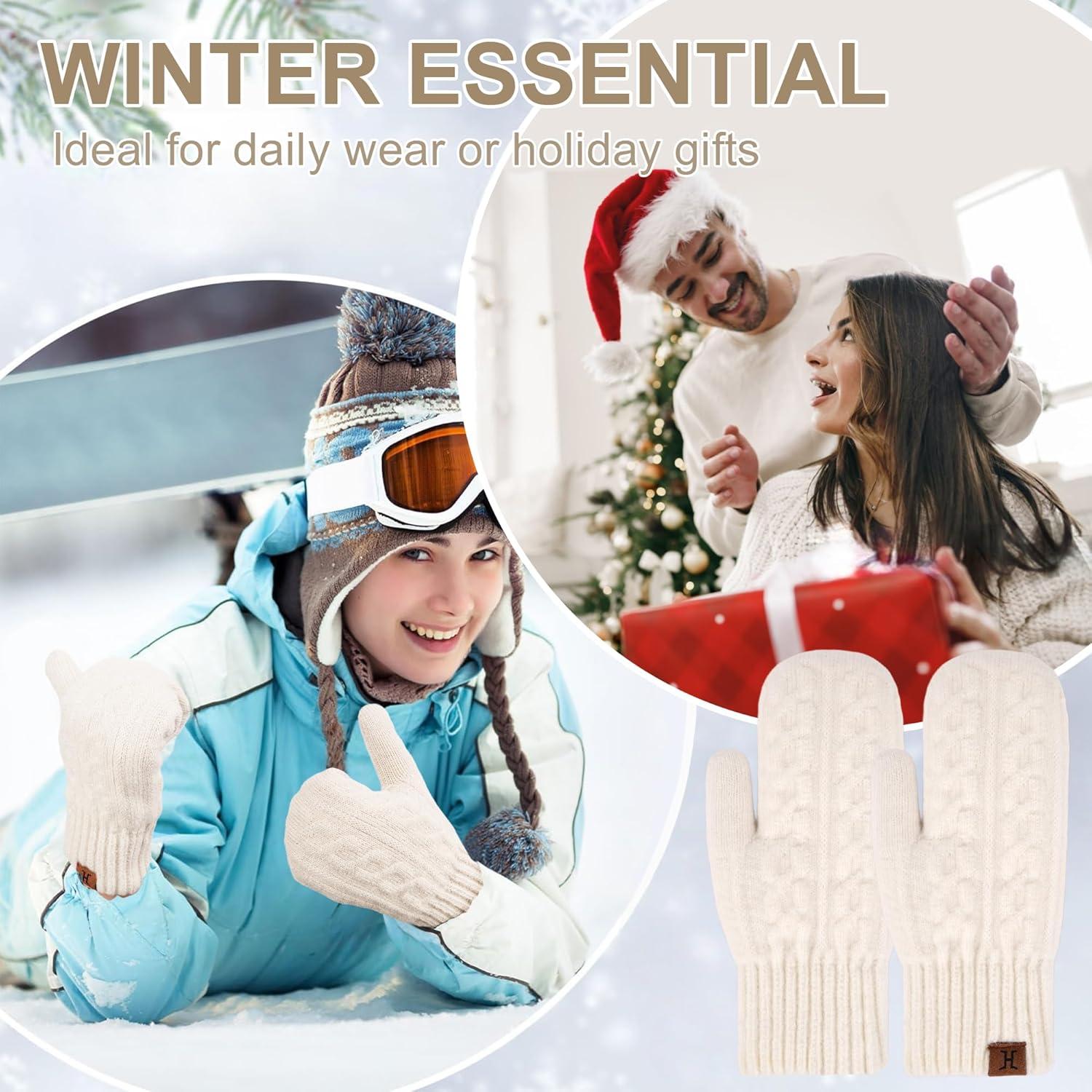 FZ FANTASTIC ZONE Winter Warm Mittens for Women, Knitted Womens Gloves for Cold Weather with Thick Fleece Lined Gifts(White)