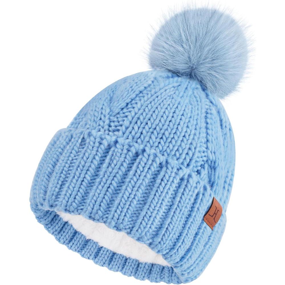 At the top of the fleece beanie is a fluffy and plump pom-pom that enhances the overall beauty and fashion appeal of the knit hat.