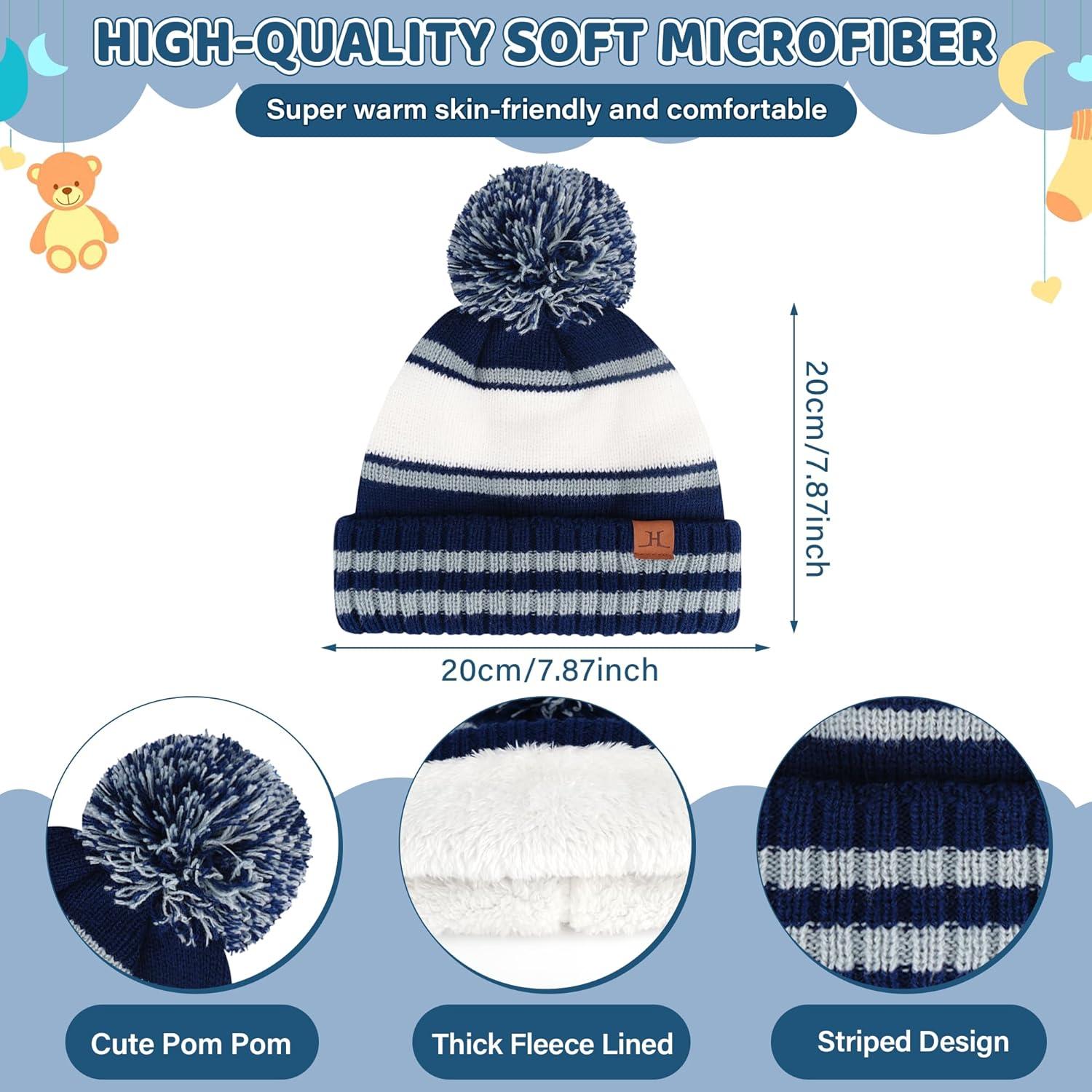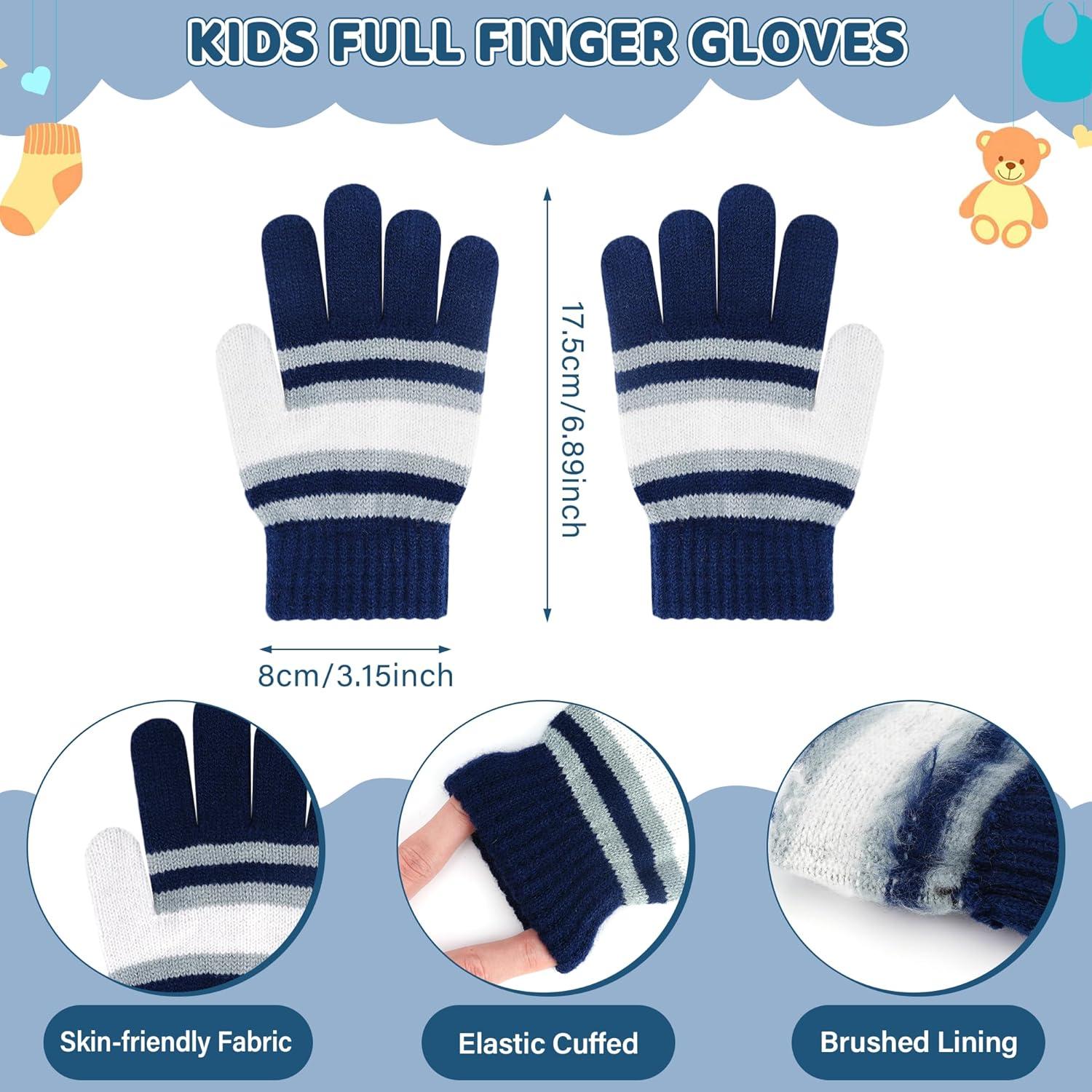 Our 3 in-1 boys girls winter hat set includes a cute baby beanies hat, a kids scarf/neck warmer, and a pair of toddler mittens gloves. Moreover, our boys winter glove sets feature thick and soft wool linings, providing an ultimate warm experience.