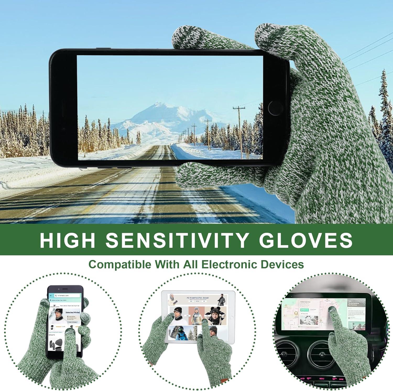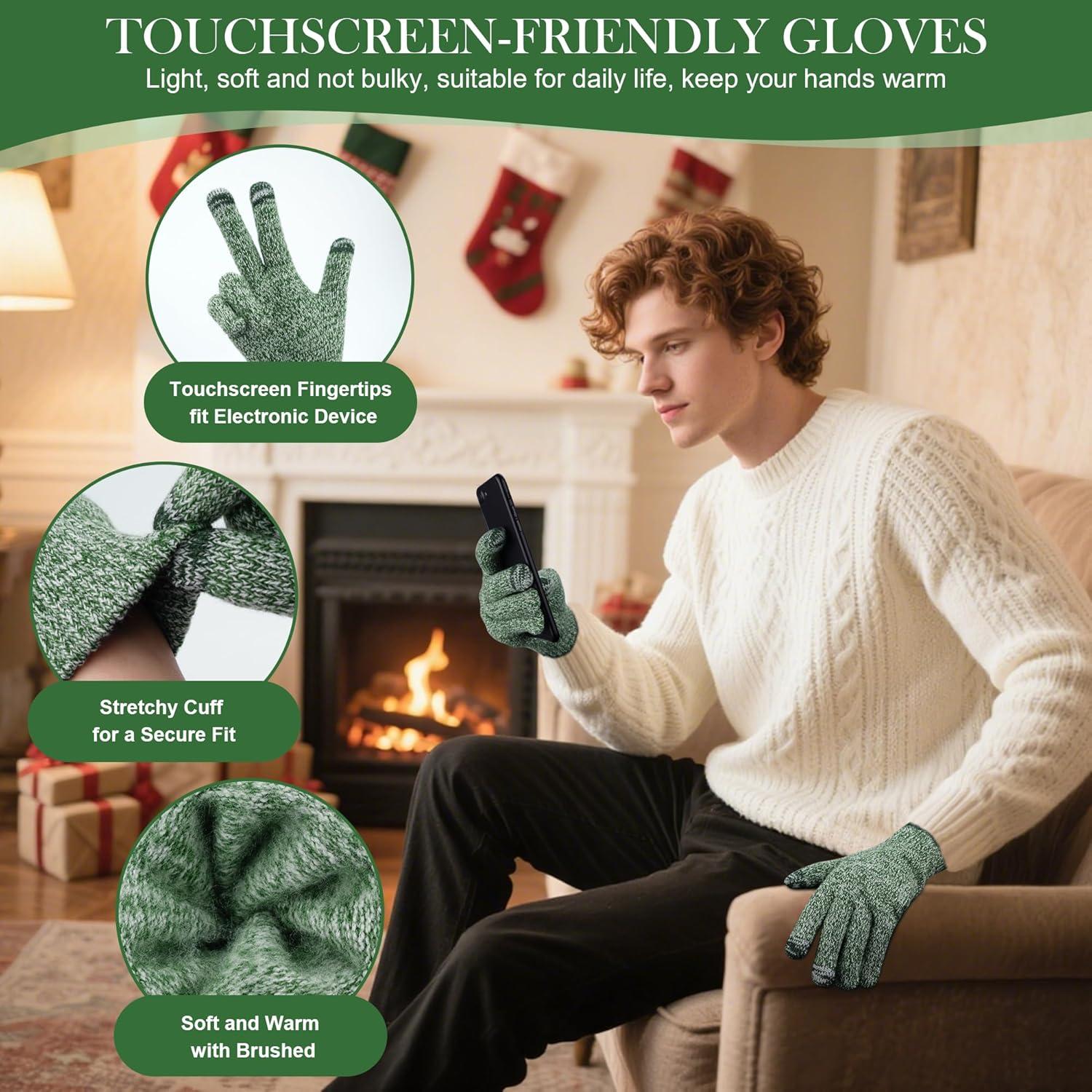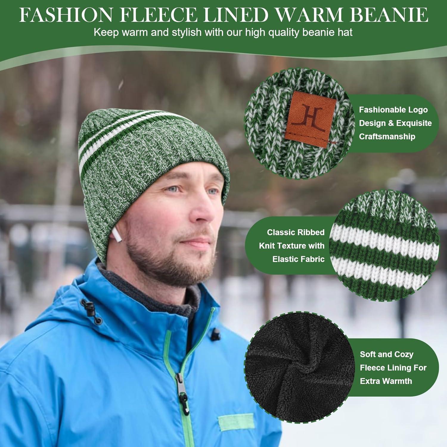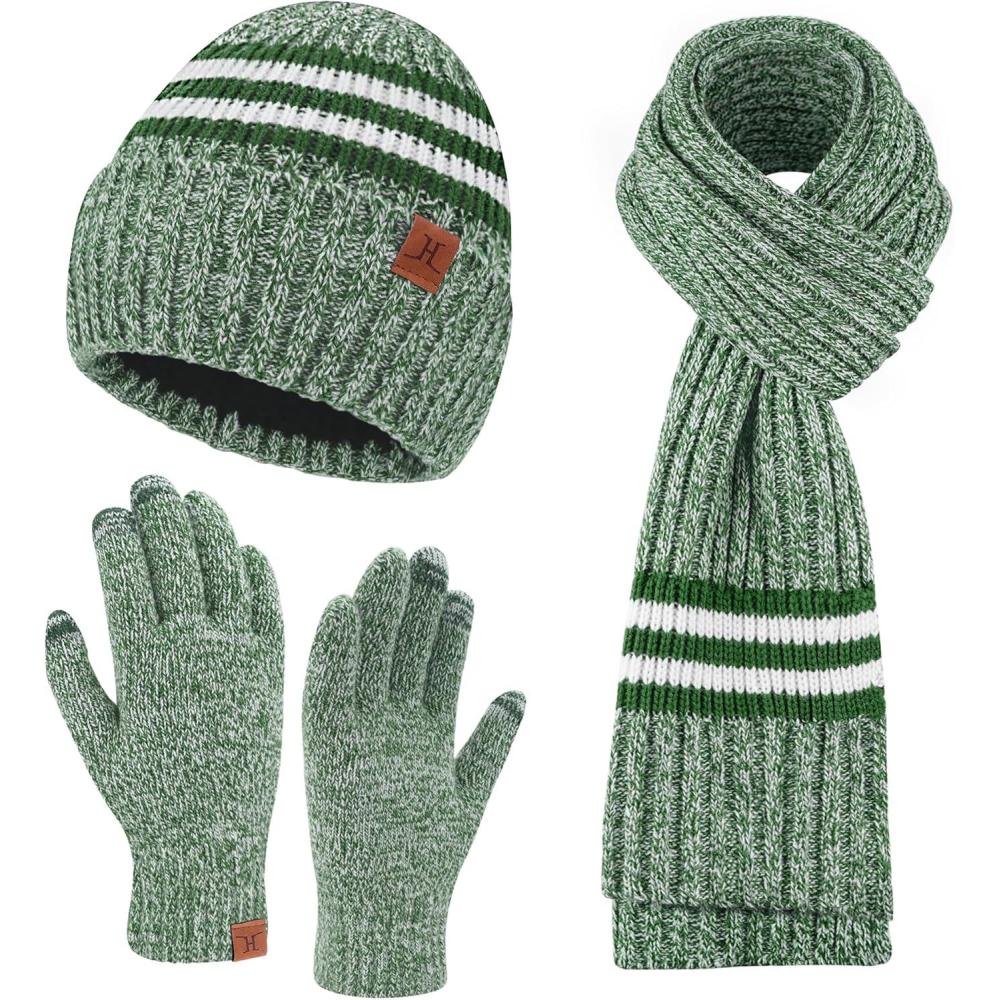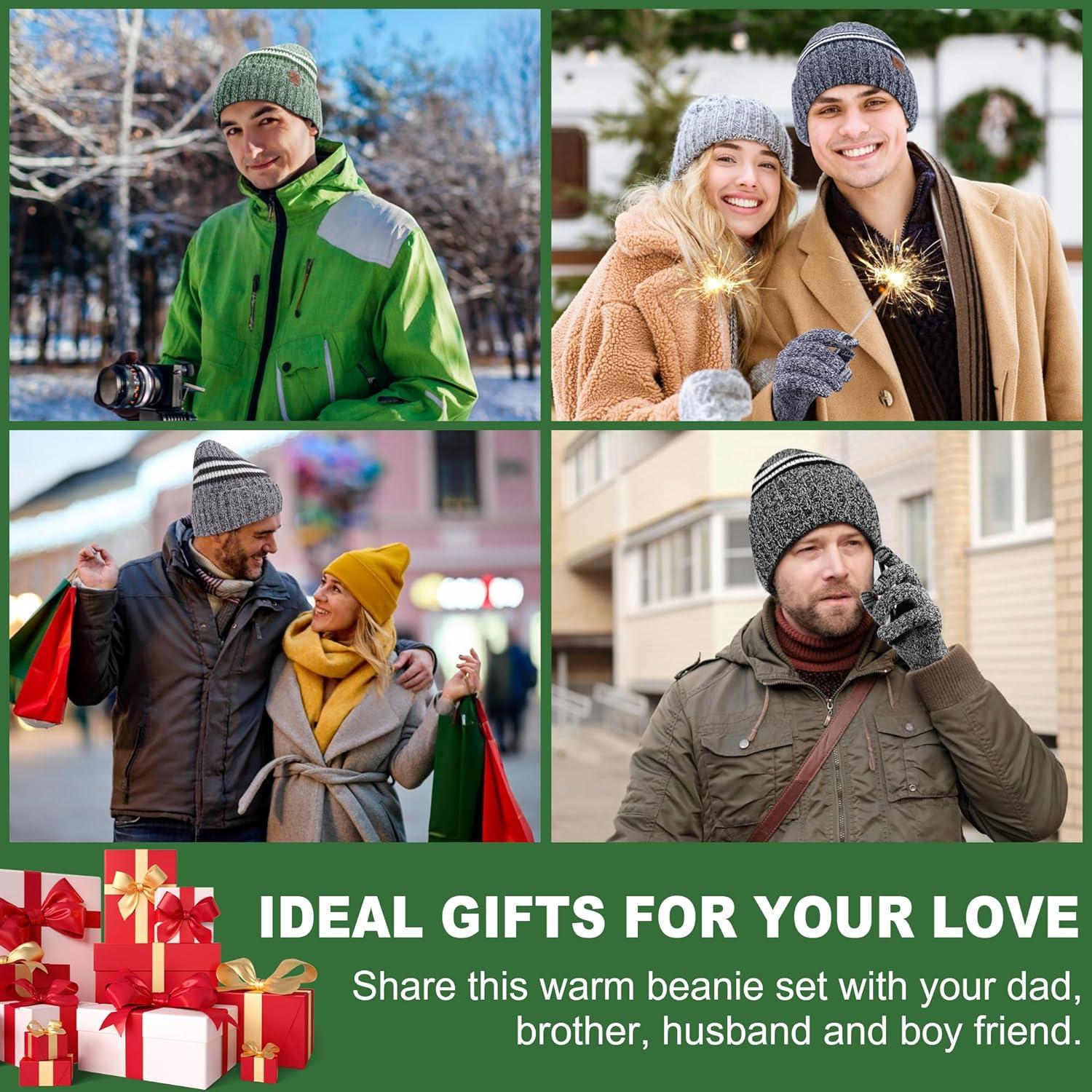 Winter Hats for Men Knitted Touchscreen Gloves Warm Scarf Set with Fleece Lined