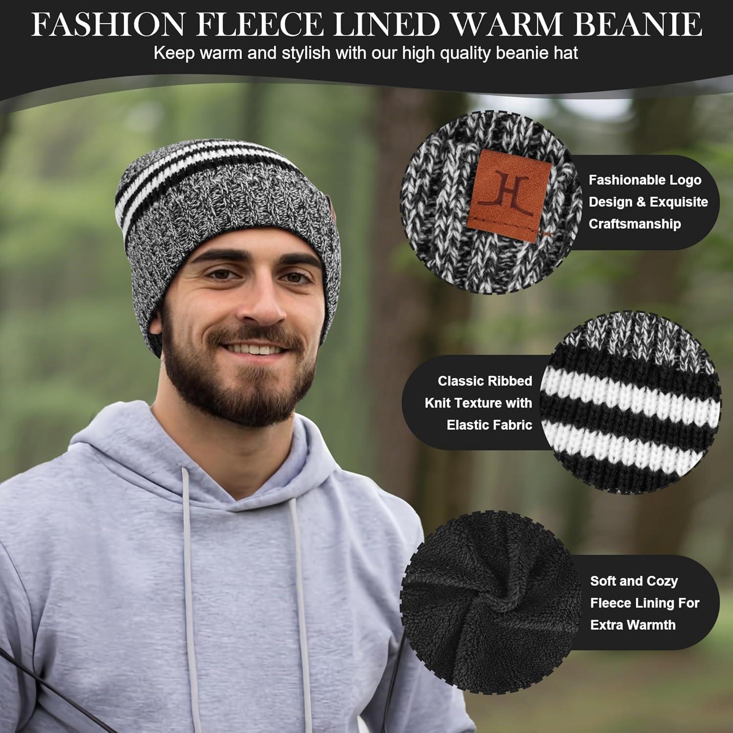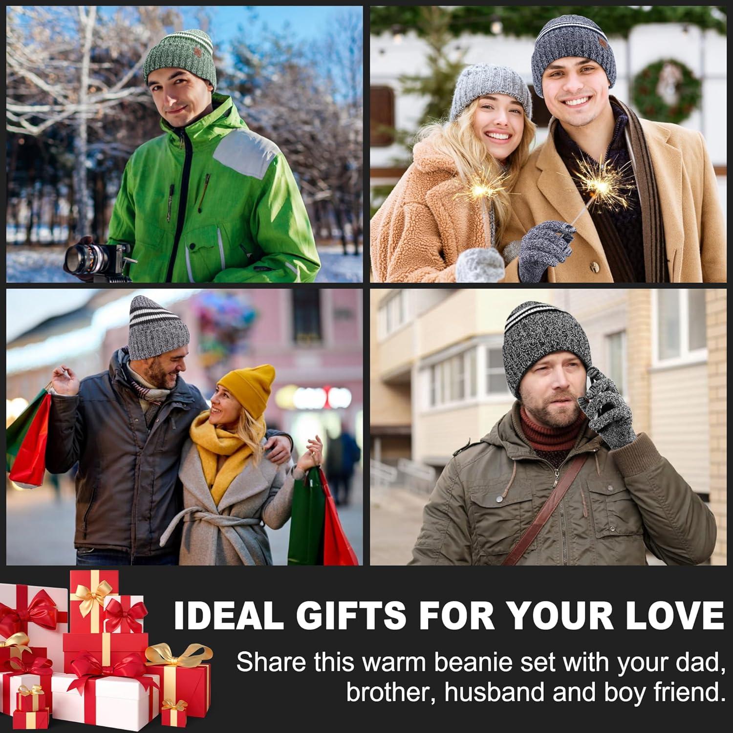Winter Hats for Men Knitted Touchscreen Gloves Warm Scarf Set with Fleece Lined