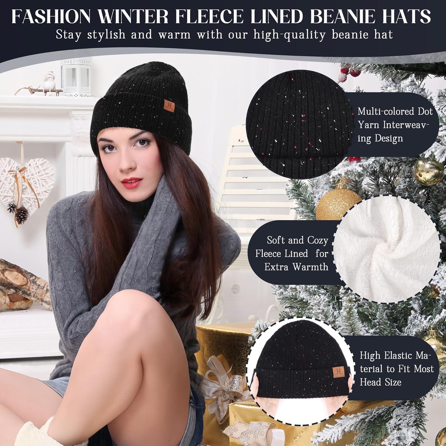 Womens Winter Hats and Gloves Scarf Sets, Fleece Warm Knit Beanie Neck Warmer Skull Caps Touchscreen Gloves for Women Gifts(Black)