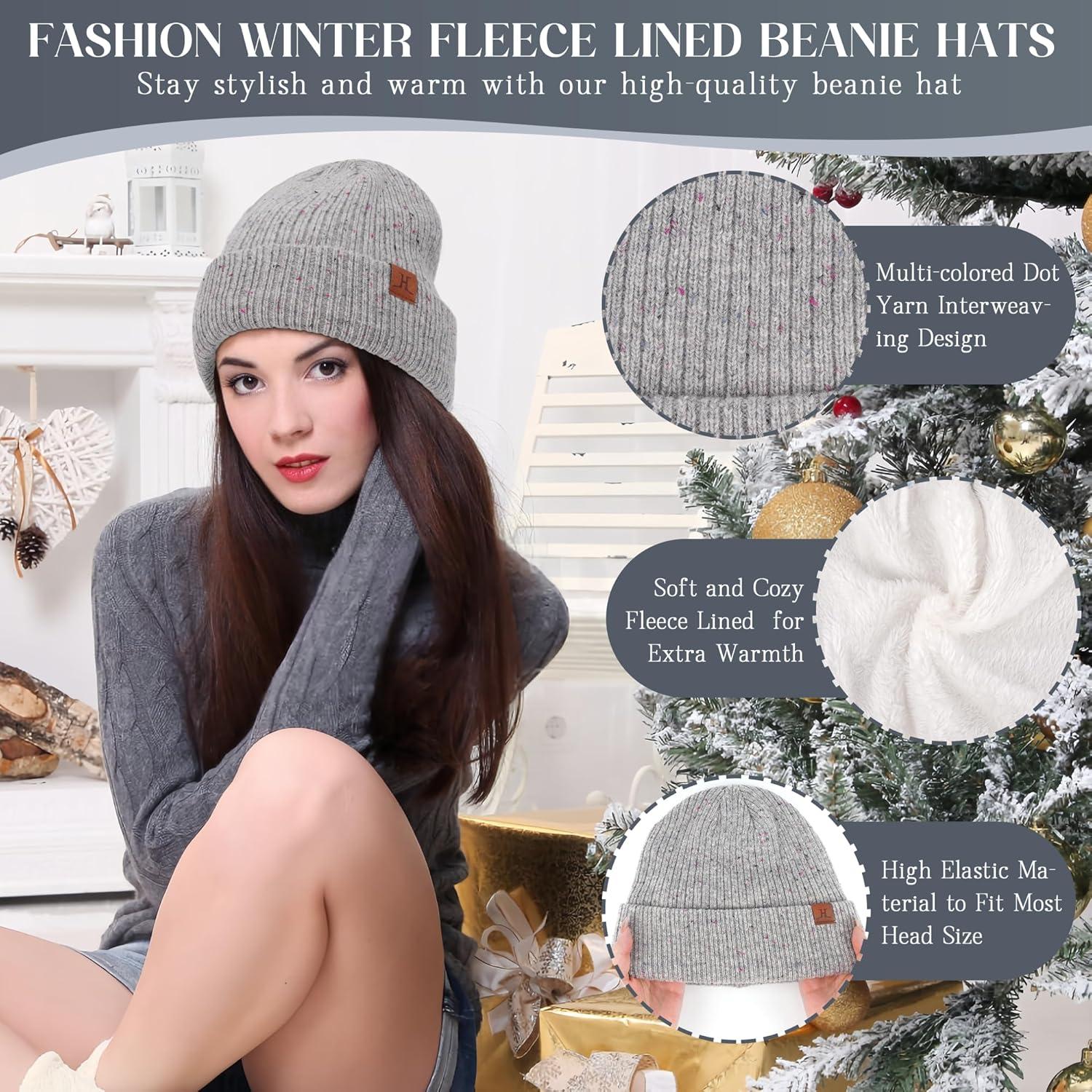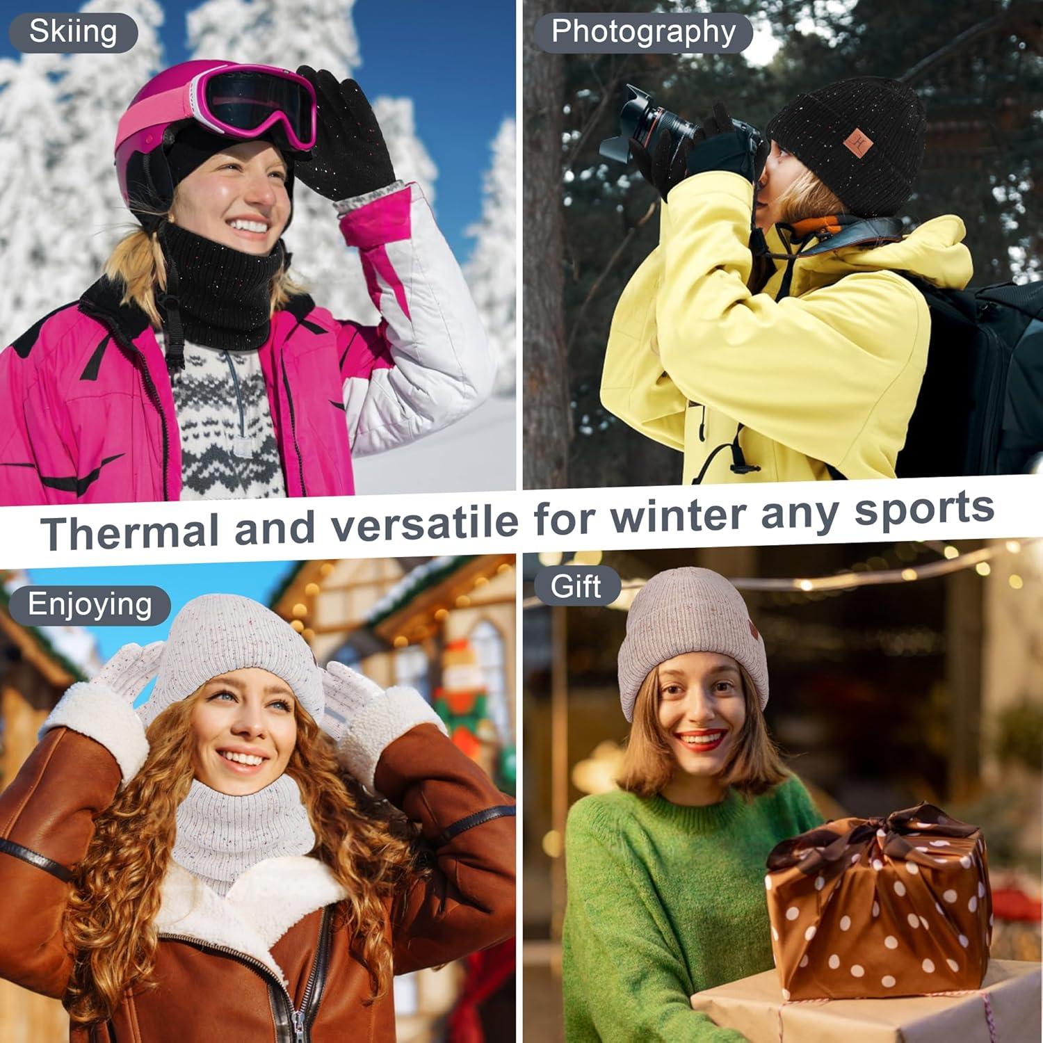 Winter Hat and Gloves for Women Fleece Warm Knit Skull Caps Neck Warmers for Women